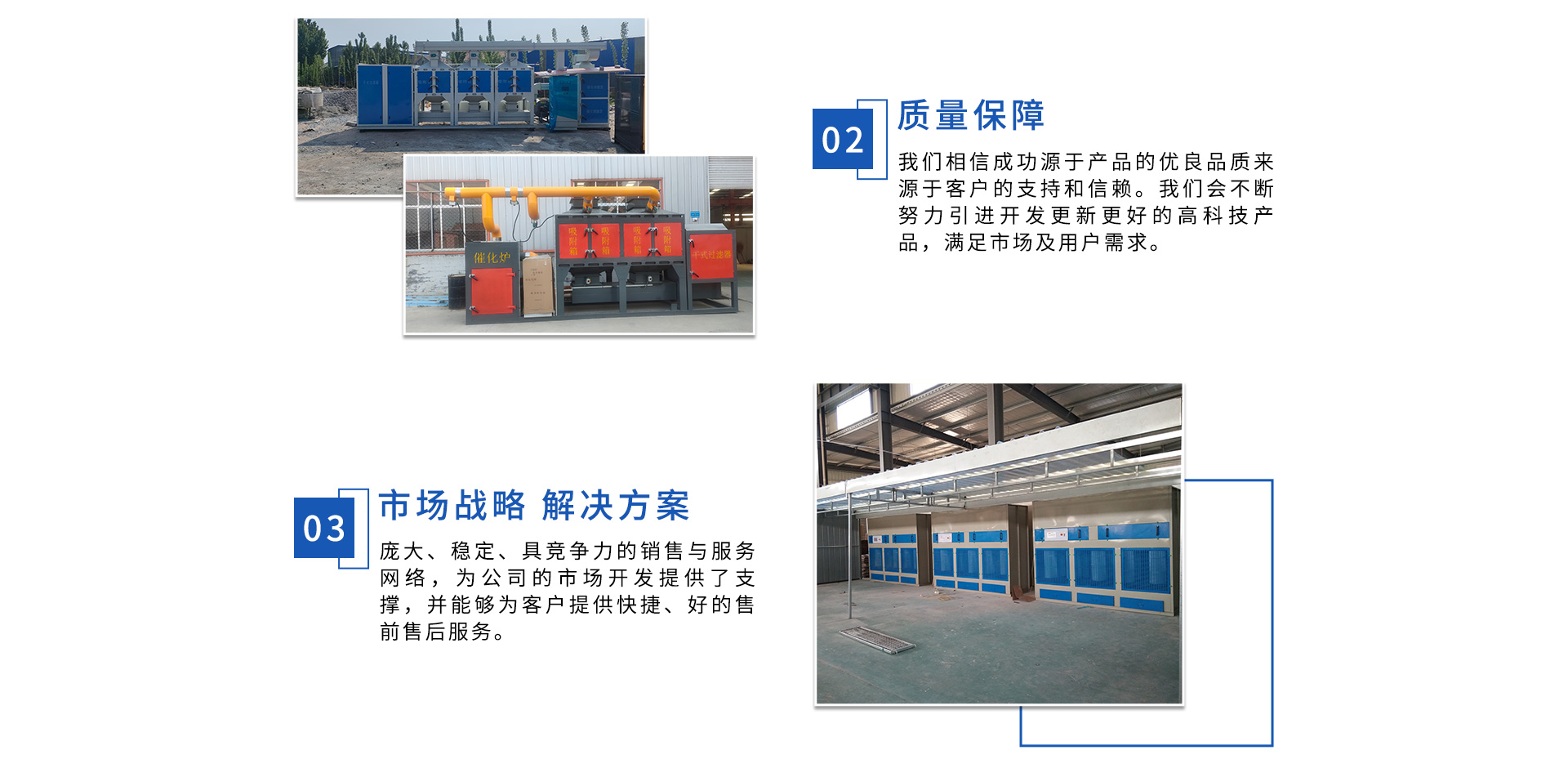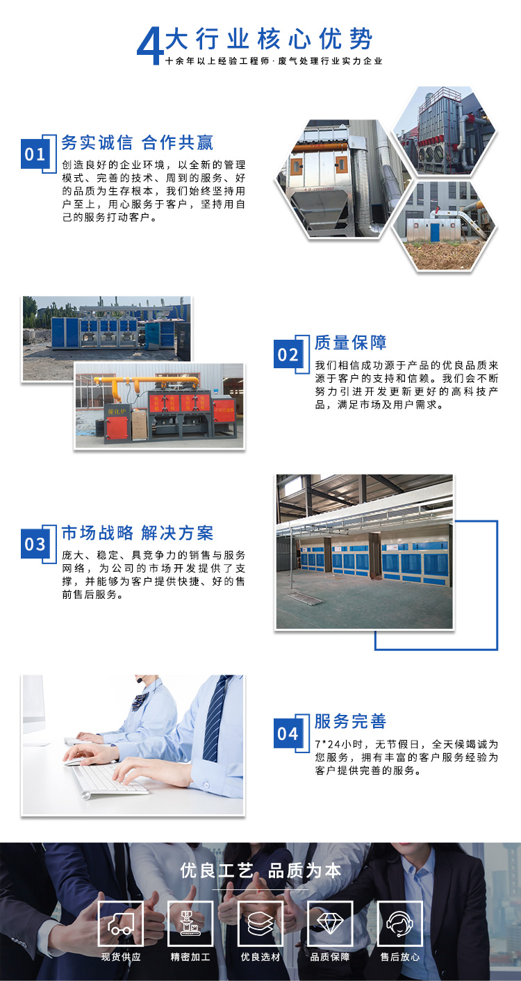 公司自成立以來,始終專注于工業(yè)廢氣、污水、粉塵等環(huán)境污染的治理,先后研發(fā)出催化燃燒設備、光氧催化廢氣處理設備、低溫等離子廢氣處理設備、粉塵處理-體化設備等一系列環(huán)保設備,產(chǎn)品先后通過ISO901質量管理體系認證、中國環(huán)境保護產(chǎn)品認證。
